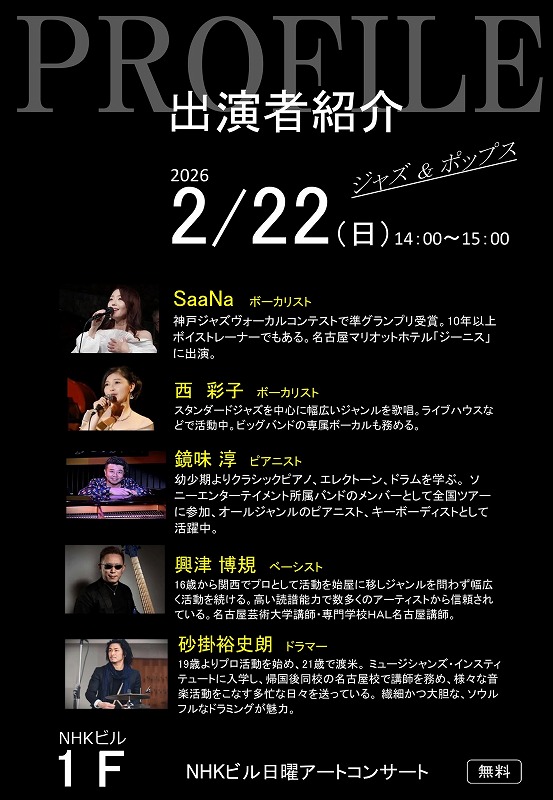 「NHKビル 日曜アートコンサート」9月10月の予定です